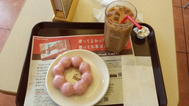 Since Mister Donut was right next to where I parked my bike, I decided to give them another chance. I went in and chose from a huge assortment of very nice looking donuts, which I supplemented with an ice coffee. The coffee was delicious, the donut did not taste as good as it looked.