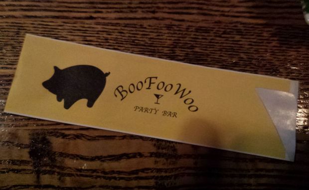 Deciding to avoid any chains, Azeroth led us down a narrow alley that I would have normally passed right by. At the end was a door with a picture of a pig’s head and a sign which read “BooFooWoo”. Unless I am missing something, there is literally nothing about the name and picture on the door that would give you any hint that you’re at a bar.