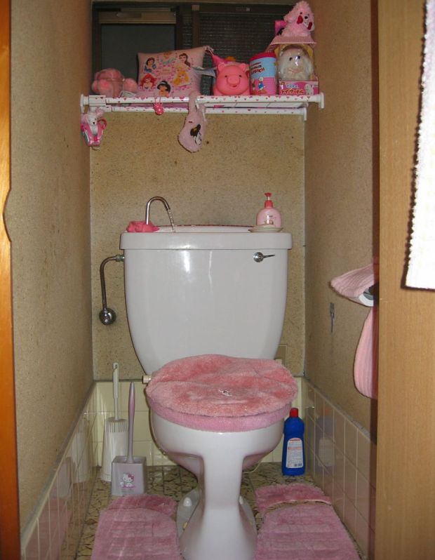The apartment was nice and pretty spacious for a Japanese apartment. Everything looked pretty typical, except the toilet room (in Japan the toilet and bath are often in separate rooms). This is the one room where Koalako really got to express herself, making the entire room pink to annoy her roommates.