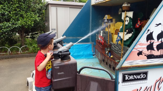 TD was totally overwhelmed with his options and didn’t know where to start. We rode the train and merry go round and rode a few of the coin operated rides before he found the most exciting game in the entire park: Pirate Blasta.