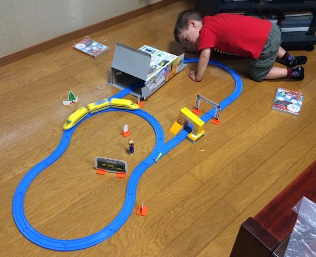 I know you’re not supposed to give kids too much screen time, but sometimes it’s the only way to get anything done around the house. We let Tiny Dog use the YouTube Kids app, and he has a few favourite types of videos that he likes to watch: playgrounds, marble runs, and cool toys. One of the coolest toys that he likes to watch is plastic rail sets, known in Japan as purarail.