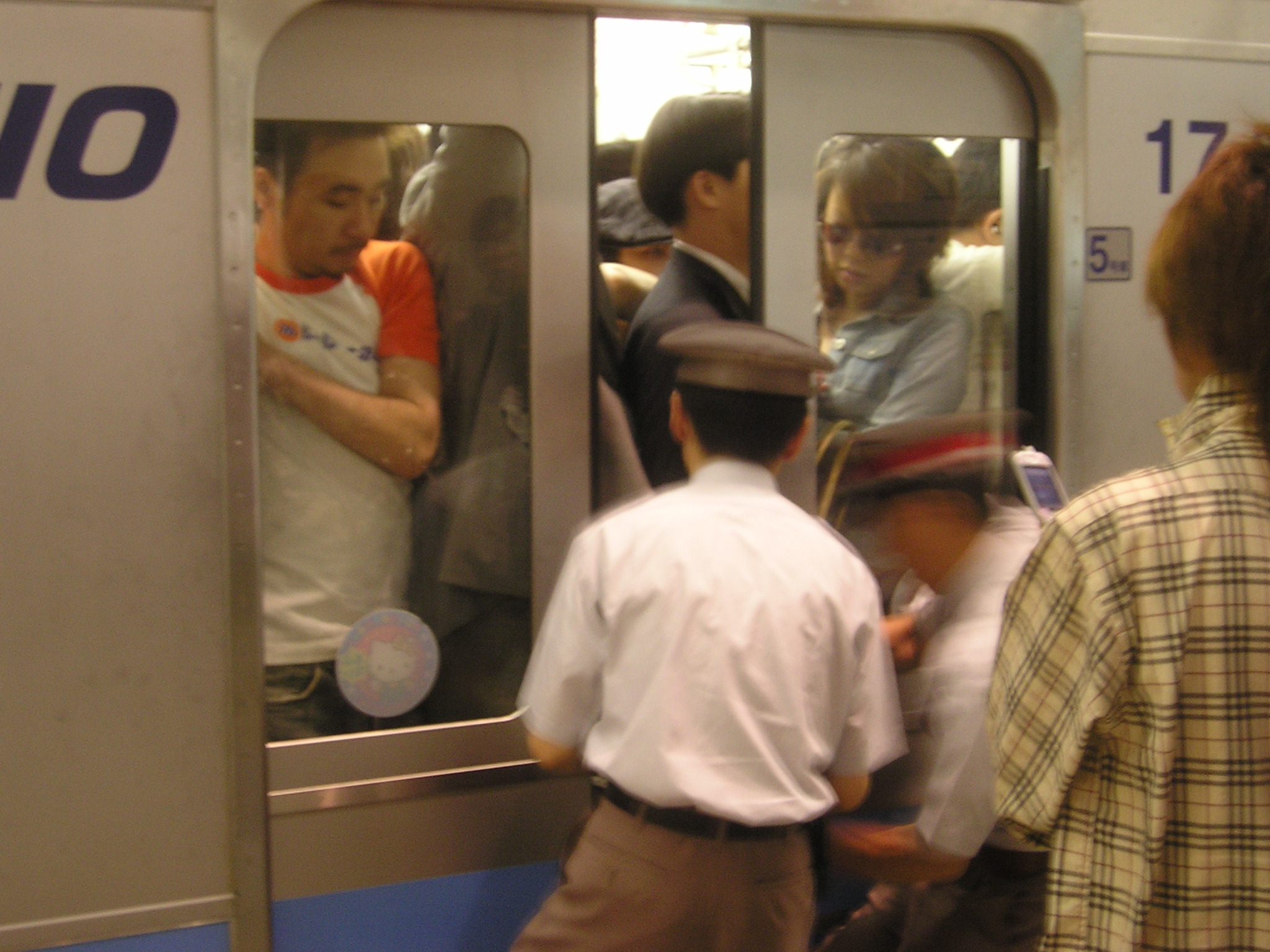 At Shimokitazawa the doors opened and a crowd of people started flowing out of the train. Japan is a usually very polite and orderly country, except on crowded trains. When the train is crowded, anything goes. Hippie, Code Red, Green and I all forced our way off the train, but Flounder was trapped behind a man who stood directly in the doorway with his arms crossed.